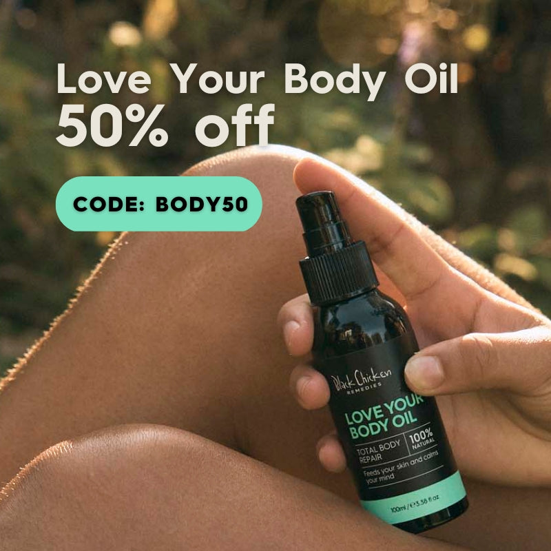 50% off Love Your Body Oil. Add code BODY50 to checkout. Offer ends 5th November 2025 11.59pm AEDT or while stocks last. Cannot be applied to previous purchases or backdated. Standard postage costs still apply.