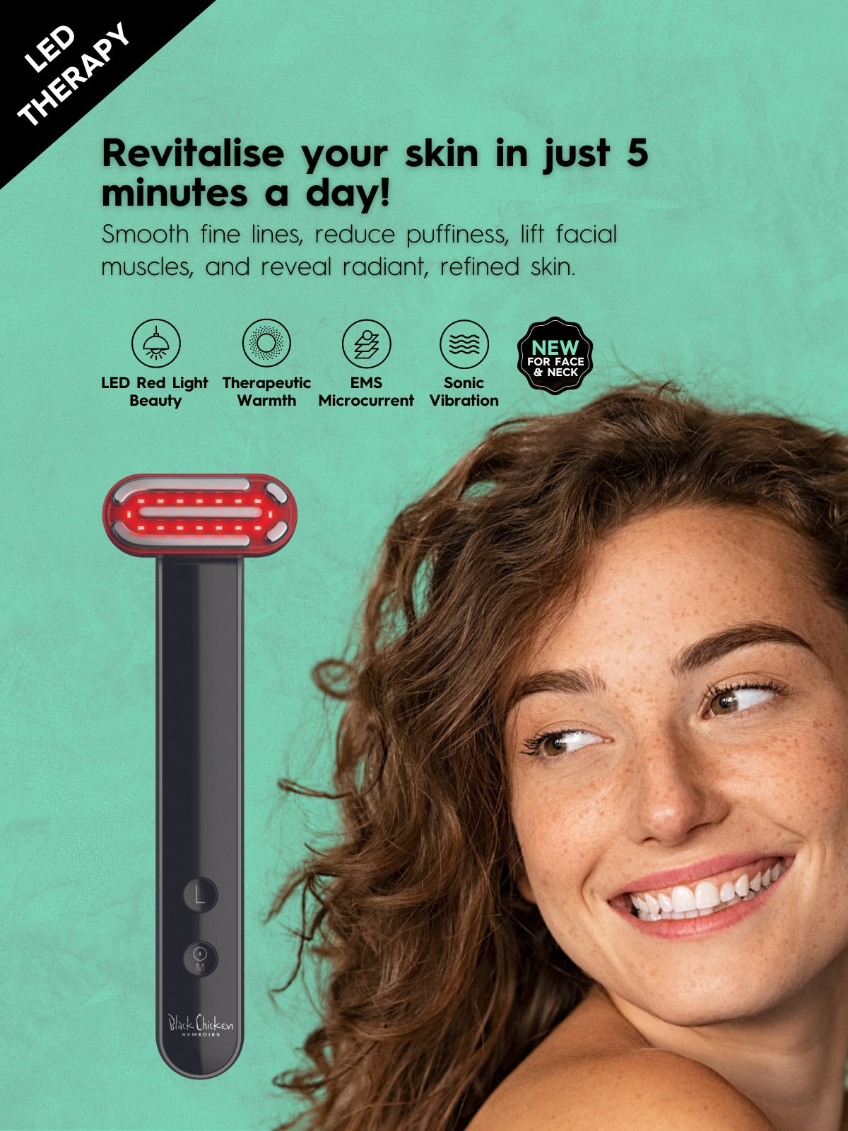 Introducing the ZenSkin 4-in-1 Facial Wand, your gateway to radiant, youthful skin. Harnessing the potent benefits of red light therapy, microcurrent technology, warmth and massage, this innovative device is designed to transform your complexion with just 5 minutes of daily use.
