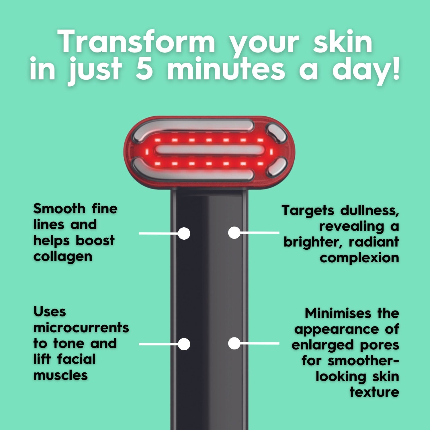 The device harnesses red light therapy to stimulate collagen production, reducing the appearance of fine lines and wrinkles while rejuvenating your skin from within.